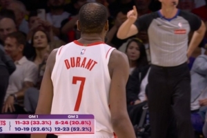 首战,湖人三分52.6%,火箭为33.3%;而本场G2,目前湖人三分52.2%,火箭20.8%再次被吊打。