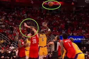 GIF-艾顿摁着申京的胳膊,将自己边的球拍给詹姆斯