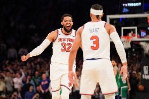 据统计,尼克斯队史近50年来仅唐斯和哈特在季后赛砍下过三双,榜单详情如下: