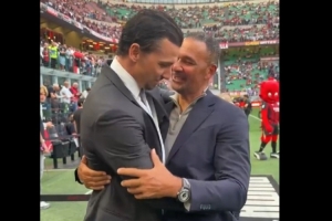 体育资讯4月27日讯 北京时间今天2点45,意甲第34轮米兰主场对阵尤文。赛前,两名米兰传奇伊布与古利特在场边交流并拥抱。