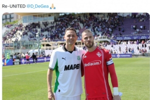 体育资讯4月27日讯 意甲第34轮比赛,萨索洛在客场以0-0的比分战平佛罗伦萨。本场比赛,两名前曼联球员马蒂奇和德赫亚在场上交手,但显然两人有着不错的友谊。
