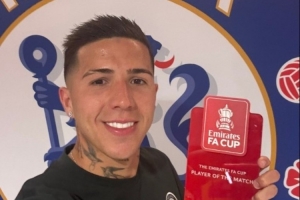 足总杯半决赛,切尔西1-0击败利兹联晋级决赛,本场比赛恩佐打进制胜球,赛后他也当选官方评选出的本场最佳球员。切尔西官方社媒也更新动态,晒出恩佐领取全场最佳的照片。