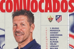 体育资讯4月22日讯 北京时间本周四凌晨1点,西甲第33轮马竞客战埃尔切,马竞公布了此役球队大名单,此前未参加合练的卢克曼、瑟尔洛特缺席,阿尔瓦雷斯也未进入名单。