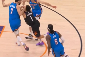 GIF-布克击中切特面部,后者防守犯规