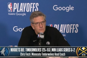 体育资讯4月28日讯 NBA季后赛首轮,森林狼113-125不敌掘金,大比分3-2领先,森林狼主帅芬奇赛后接受了媒体采访,以下为完整版采访。