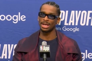 亚历山大:米切尔是联盟中最强硬的家伙之一。在心态上,他从不动摇。他从不畏惧大场面。就算他经历了最糟糕的一天,你也绝对看不出来,他就是这么稳定。拥有这样一位队友会让你充满信心,因为你知道无论发生什么,你都清楚他能为你带来什么。球可能不总是能投进,但你清楚他每次踏上球场都会做出怎样的贡献。和这样的球员一起打球是件美妙的事,非常完美,他正是你梦寐以求的队友。然后你再看他的天赋水平,这孩子太懂怎么打篮球了,他知道如何到达自己的投篮点,他知道在场上想要什么。他懂得如何策动下一步进攻。我经常说,作为一个团队,你希望场上的五人随时都能传球、投篮和运球,而他就是这样的球员。正因如此,他在攻防两端都让我们变得更好。他今晚的表现极其关键。在第四节伊始,我真的觉得他是我们赢下比赛的原因。虽然不是唯一的原因,但他在第四节一上来就极具侵略性地拿下了几分,顶住了对方的反扑并稳住了局势。然后我们在最后时刻收下了比赛。他今晚真的非常出色,尤其是在经历了一个低迷的夜晚之后。但我对阿贾伊·米切尔的期待本就如此。