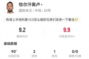 体育资讯4月22日讯 国米在意大利杯半决赛次回合3-2逆转科莫,恰尔汗奥卢本场数据如下: