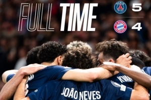 体育资讯4月29日讯 本轮欧冠半决赛首回合,巴黎主场5-4拜仁。