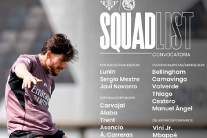 皇马对贝蒂斯名单:琼阿梅尼、居莱尔、米利唐缺席,阿森西奥回归